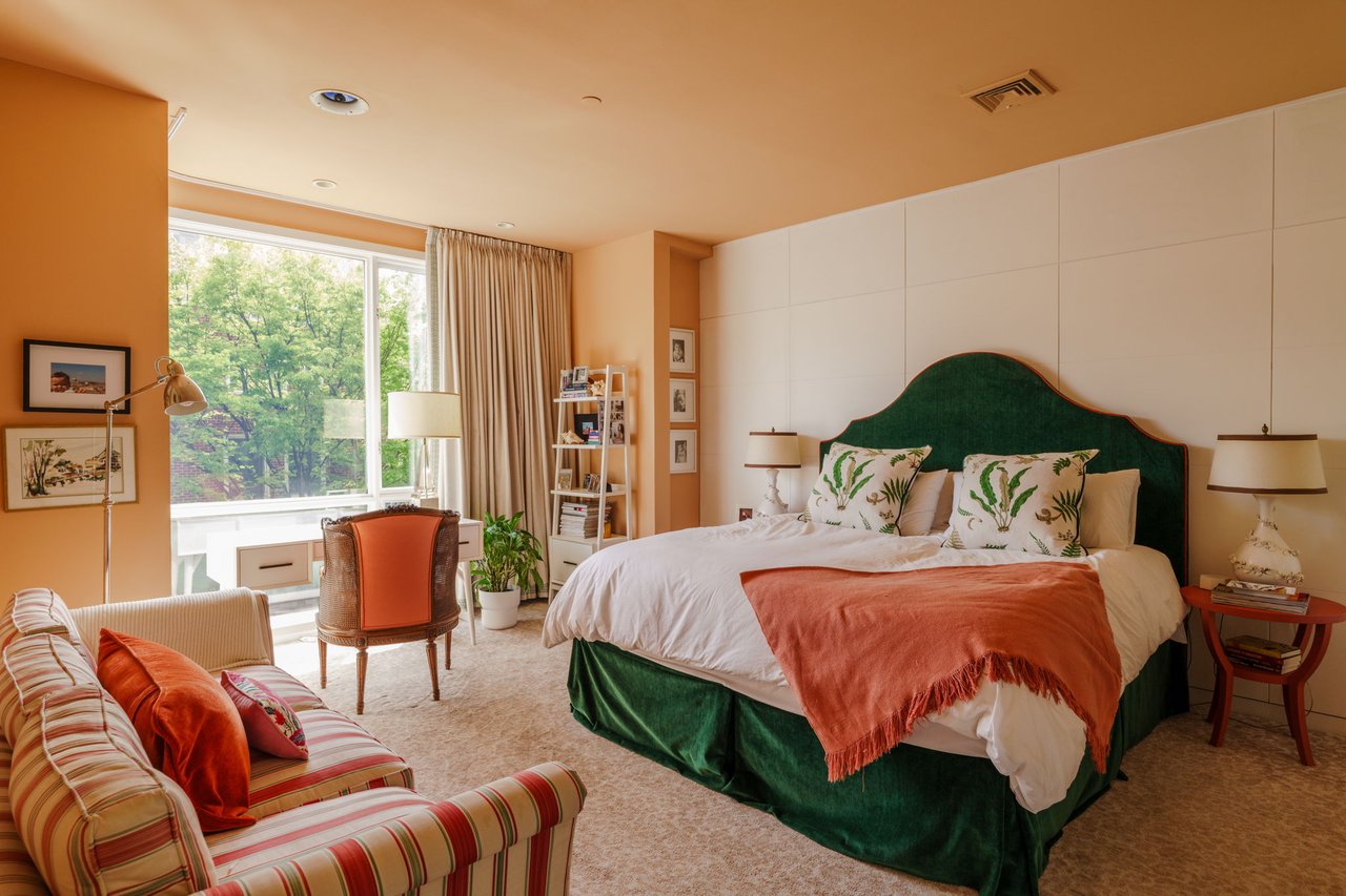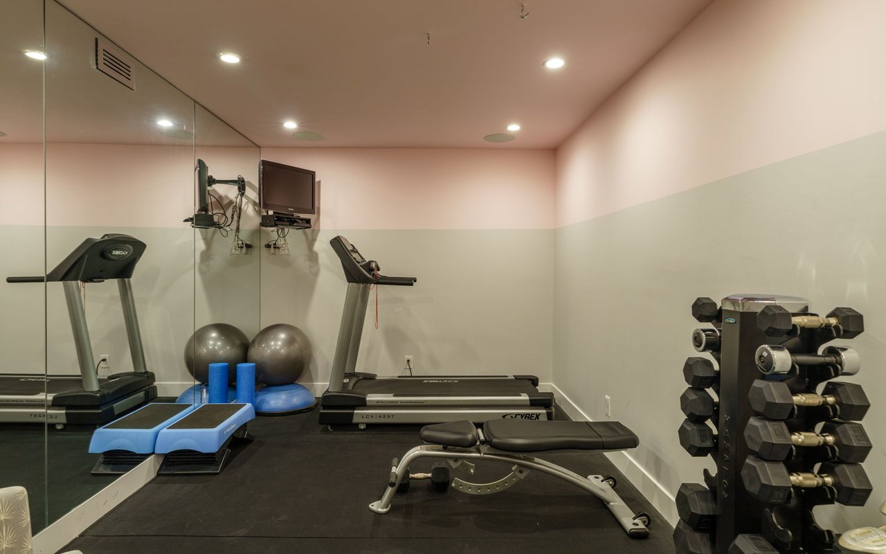 Arrive on the ground floor where the two-car tandem garage and street-level entry open to a gracious foyer lined in rich floor-to-ceiling paneling and a convenient coat closet. Ahead, you’ll find a spacious home gym, a guest room and a well-appointed bathroom.