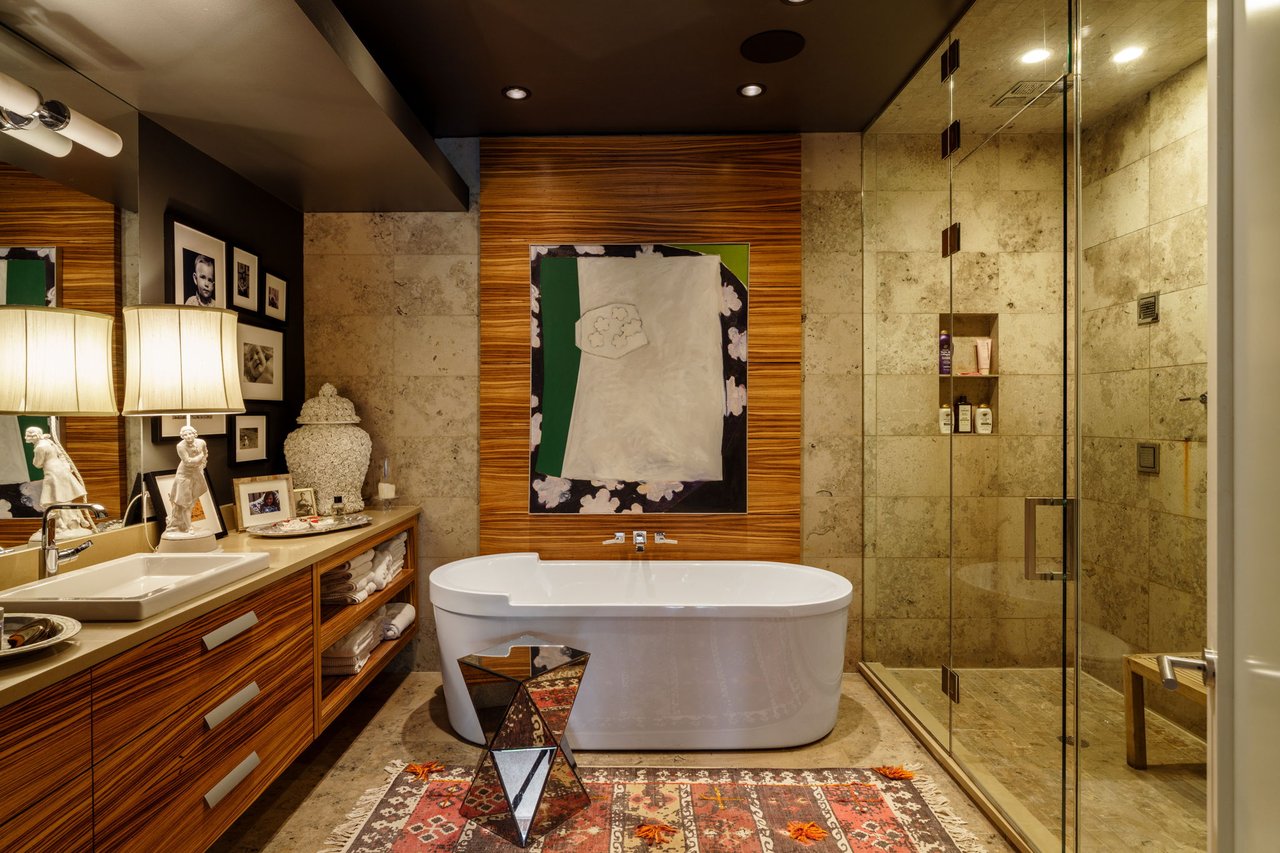 Built in 2011, this expansive home delivers exceptional materials and craftsmanship throughout, from the sky-high ceilings dotted with speakers and recessed lighting to the gleaming stone tile and hardwood floors. In between, stunning millwork and floor-to-ceiling windows create a magazine-worthy ambiance throughout.