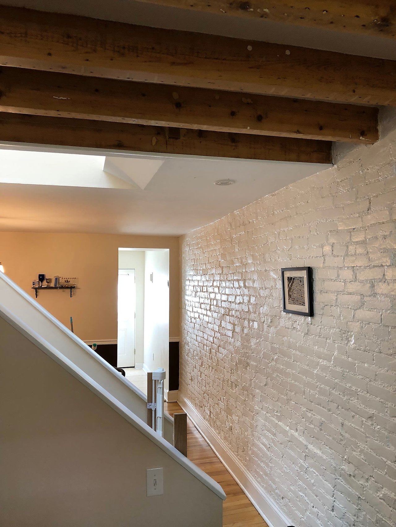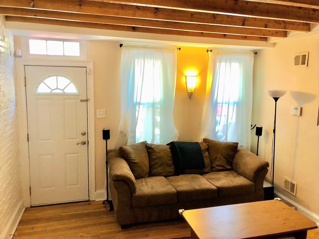 Fabulous Graduate Hospital home on the quaint tree-lined block. Open the front door to a living room full of character with bamboo floors, exposed beams, and a whitewashed brick wall. Beyond the living room is a spacious dining room leading to a sunny kitchen with solid wood cabinets, stainless appliances, built-in storage, and additional counter space. The back door leads to a parking space for a compact car that can also be used as a back patio perfect for grilling. Take the staircase up to the 2nd floor, which is flooded with light from a skylight. The two bedrooms share a fully renovated bath with a granite counter & spacious shower with a seamless glass shower door. The master bedroom has large south-facing windows, and a sitting area perfect for relaxing. The basement is finished with new carpet, extra storage, a 2nd full bath with tub, and a full-size washer/dryer. This home has so much to offer in this superb neighborhood!
