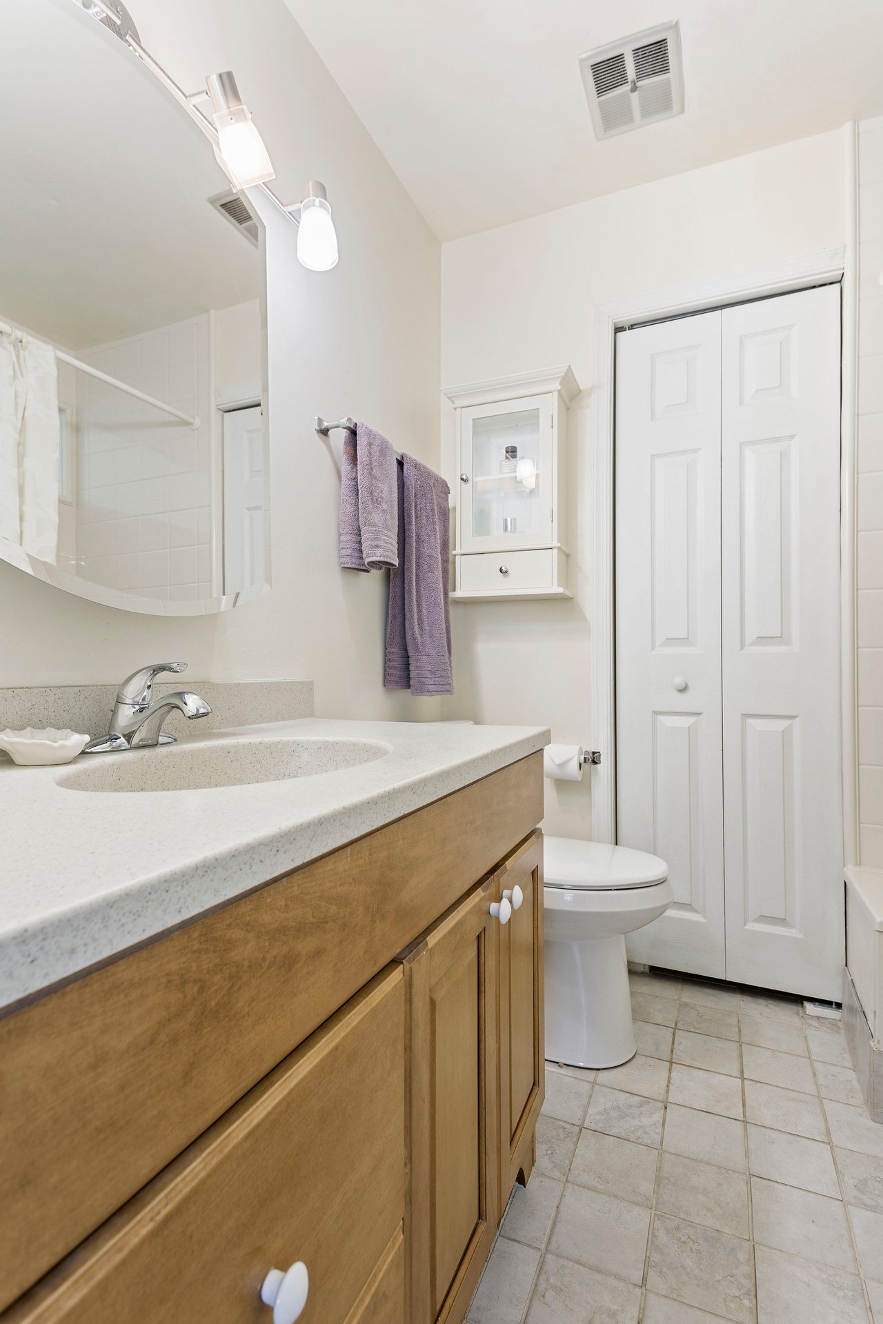 | 2 Bed/2 Bath home with attached garage in the heart of Bella Vista. Enter the home through your attached garage or the foyer and you’ll find the kitchen with access to a patio, the first of three private outdoor spaces! Take the steps up to a spacious living room with hardwood floors, a wood-burning fireplace, and sliding glass doors to the side yard, which has access to the street. Upstairs the guest bedroom has ample closet space and access to the renovated hall bathroom. The third-floor primary suite has a wall of closets, a full bathroom, and stairs to a brand new roof deck with built-in storage. This fantastic floorplan is rounded out by an unfinished basement. |